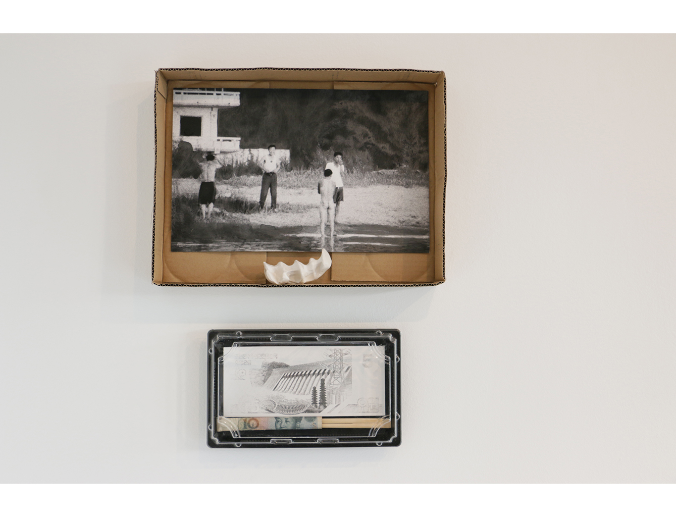 Photo-drawing, cardboard packaging, ceramic (negative of the palm of the hand)